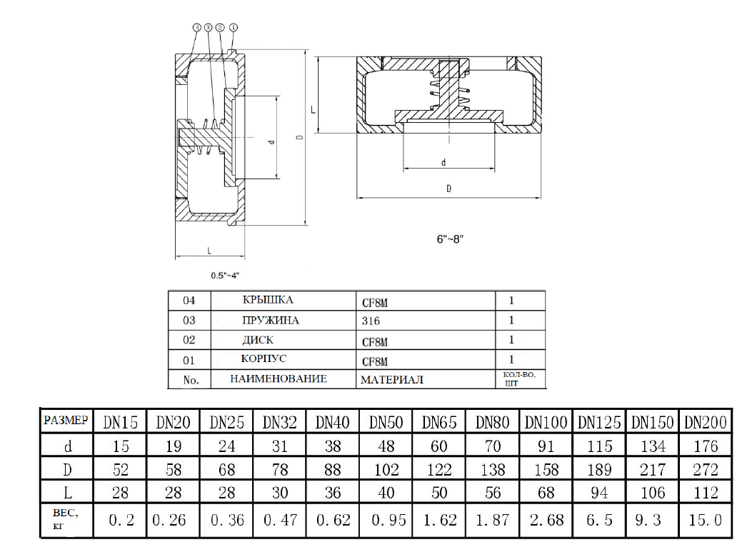 Клапан обратный межфланцевый Ду 32 (1_1/4“) AISI 316 (CF8M), нержавеющий тарельчатый пружинный
